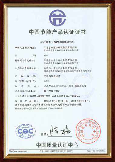 中国节能产品认证证书(单级双吸离心泵)2