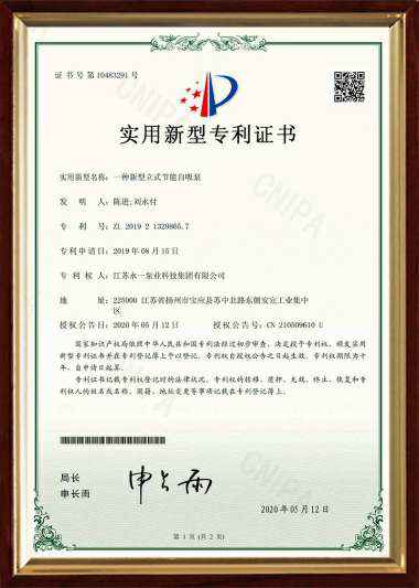 一种热水循环泵专利证明